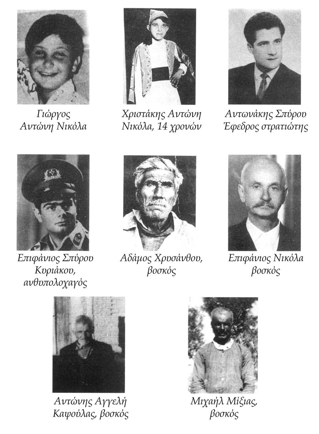 Πολλοί νέοι συνελήφθησαν και πέρασαν φρικτά βασανιστήρια από τους Άγγλους χωρίς να υποκύψουν σ’ αυτά. Ένας ομοχώριος μας συγκαταλέγεται στους 33 αγωνιστές που αποζημιώθηκαν από την αγγλική κυβέρνηση για τα φρικτά βασανι-στήρια που υπέστη.